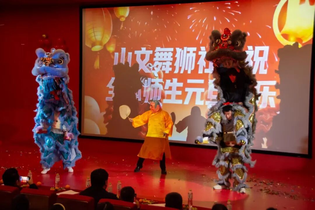 晚会在山文舞狮社团的《金狮献瑞·筑梦山文》舞狮表演中拉开帷幕。醒狮腾跃,锣鼓喧天,灵动的姿态瞬间点燃全场气氛,仿佛将我们带入祥瑞满盈的新年画卷,为晚会奠定了热闹欢腾的基调。