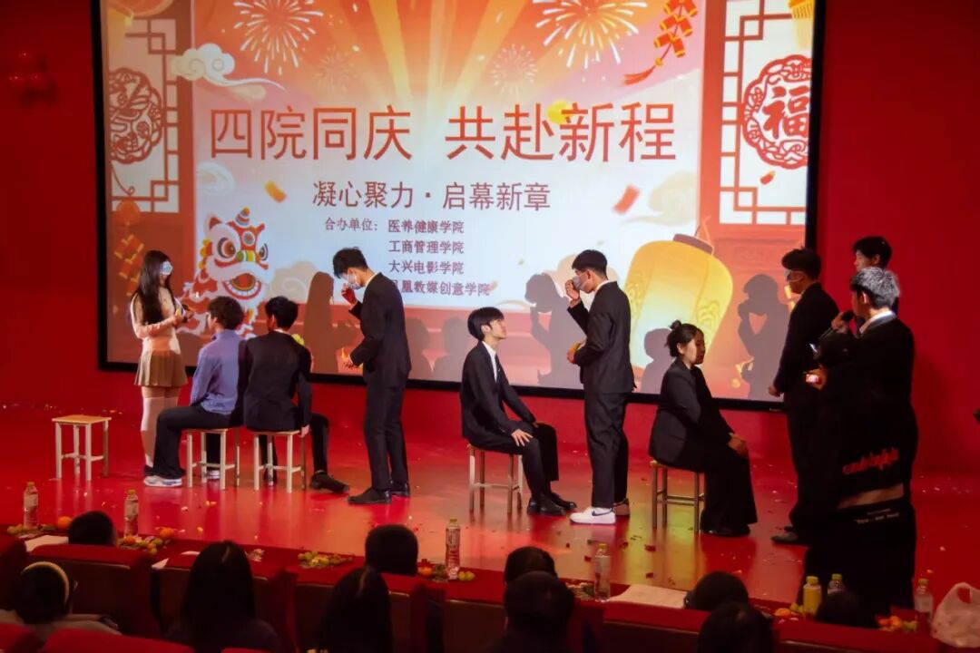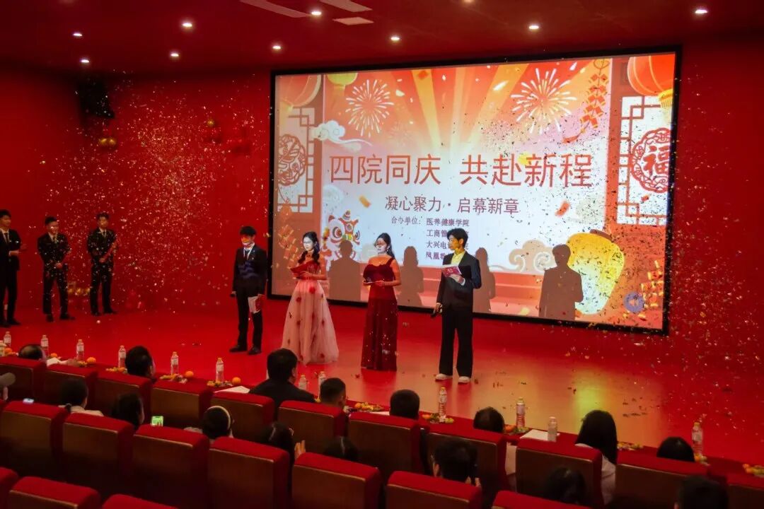 随着元旦的到来,医养健康学院与工商管理学院、大兴电影学院、凤凰数媒创意学院携手承办的元旦联欢晚会在大兴楼3号厅迎来了璀璨的时刻。在这个充满欢笑与温馨的夜晚,我们共同见证无数美好瞬间,现在,就让我们一同回顾那些难忘的精彩时刻!