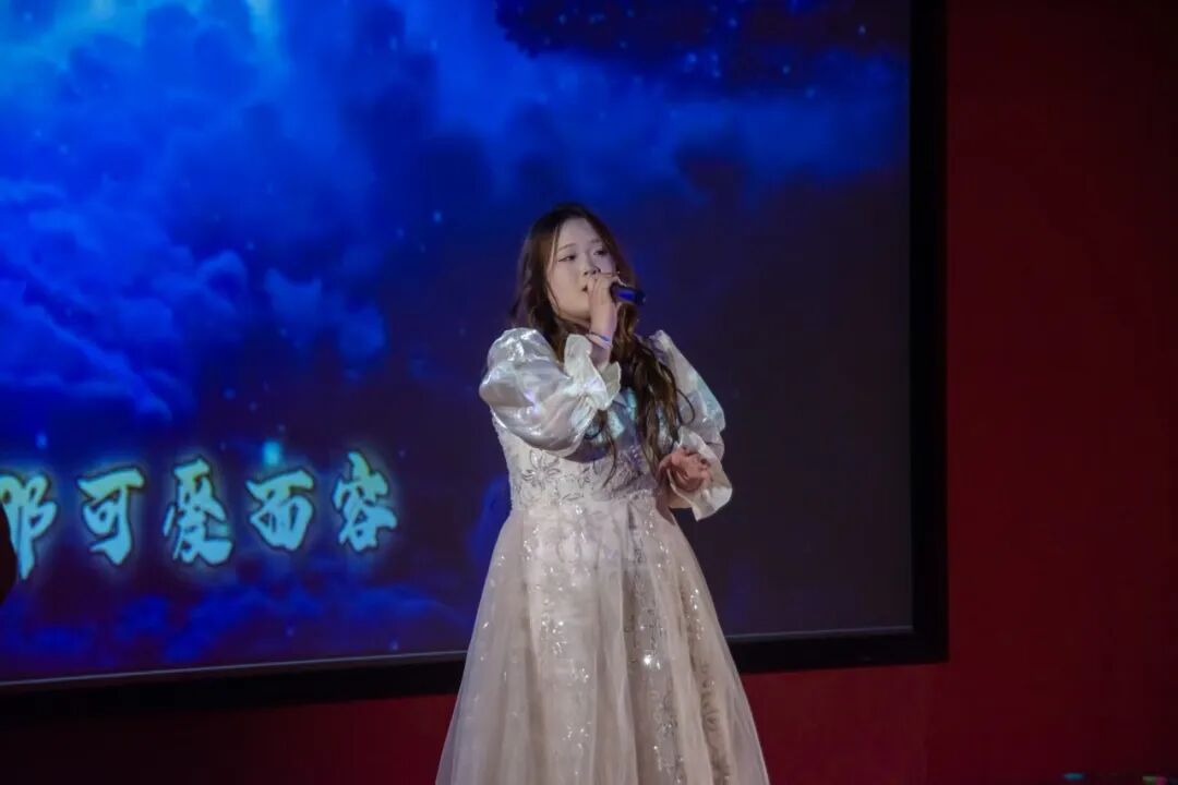 工商管理学院的李明琪演唱经典歌曲《我只在乎你》,熟悉的旋律响起,瞬间勾起全场的回忆。温柔的歌声娓娓道来,将细腻的情感传递给每一位观众。