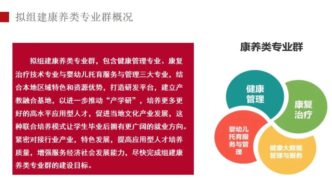 培养目标:培养掌握本专业知识和技术技能,面向卫生和社会保障行业的健康管理师等职业群,能够从事个人或群体健康咨询与服务、健康教育与培训和智慧健康项目管理等工作的高素质技术技能人才。