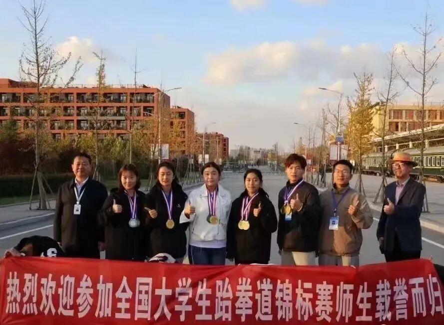 民族传统体育专业学生参加第18届中国大学生跆拳道锦标赛,荆舒妍荣获丙B女子组个人品势太极八章第一名;宋晓静荣获丙B女子组个人品势太极七章第一名;李明馨荣获丙B女子组个人品势太极六章第二名;荆舒妍、宋晓静、李明馨荣获丙B团体品势太极八章第三名。